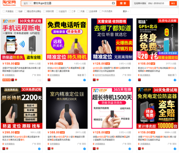 旧规则,让我们先看一下价格. 实际上,价格仍然具有优势. 白菜君开淘宝网寻找GPS定位器. 前十大商品价格大多在一百元左右.