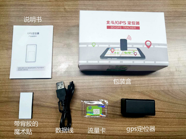打开包装盒后即是产品包装盒. 一切都在里面. 该产品包括一个定位器+中国移动的流量卡+ 1对自粘魔术贴+ USB充电电缆+手册. 数据盒带为30M * 12个月. 在咨询了客户服务之后,客户服务答复了明年的续订费,一年36元. 这个价格……白菜君只能希望定位器的价格持续下去.