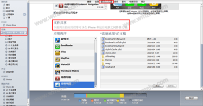 通过数据线将手机连接到计算机. 正确识别后,启动iTunes,单击右侧的iPhone按钮进入设备管理. 选择“设备对应的手机应用程序文件共享”