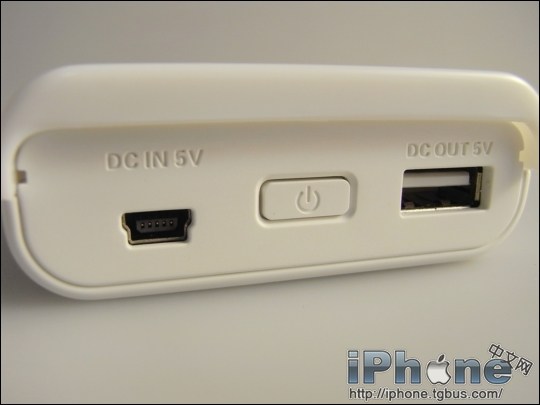移动电源顶部除了开关外,还设有mini usb接口(用于充电)及USB接口(用于供电)。移动电源采用了“双向型”供电设计,除了能输出电源外,还能为爱乐普电池充电,从而具备5号电池充电器的作用。