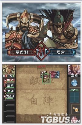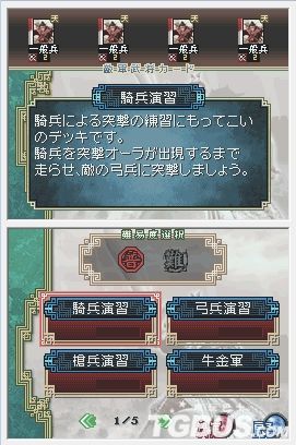 一骑讨:当双方部队进行近身肉搏时有一定几率进入一骑讨模式,上屏会依次出现5条横杠,点击下屏,力量层次分为:失败,弱,强,激,无双,越接近横杠的右侧,威力越大,结果以五合三胜论。眼睛比较准的话,单挑掉吕布也不是问题。