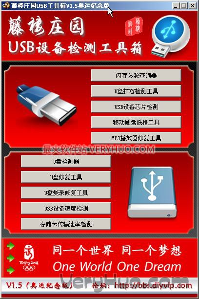 藤楼庄园USB工具箱是一款万能USB检测与修复工具,它集成了10个网上流行的USB设备的检测工具,能够对大多数USB接口的U盘、移动硬盘、MP3播放器等设备进行检测或修复。