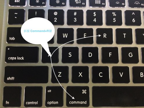 1. 当出现错误消息“您的磁盘无法分区”时,我们需要在此时重新启动Mac计算机. 重新启动计算机后,同时按住键盘上的Command + R键,并且Apple图标出现在屏幕上.