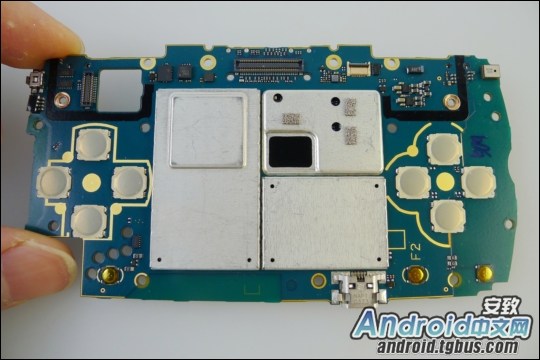 索爱PSPhone的核心部件位于屏蔽罩下面↑