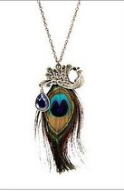 欧美视频 奢华 孔雀羽毛满钻长款项链 毛衣链XL316