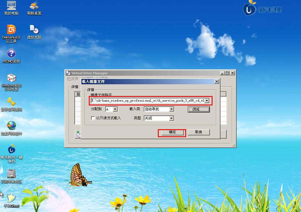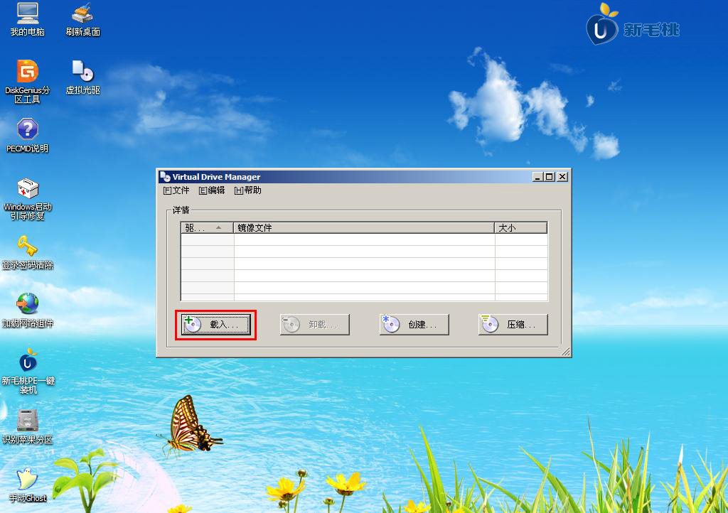 2. 进入win03PE系统后,双击桌面上的虚拟CD-ROM工具,然后在弹出的窗口界面上按“加载”按钮,如下所示:
