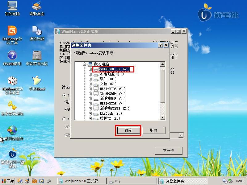 3. 然后单击浏览按钮以选择准备好的原始XP系统映像包,然后在选择之后单击“确定”. 如下所示;