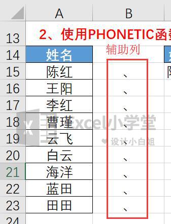 在这里我们需要一个辅助列B,在辅助列中输入逗号“,”,如下所示.