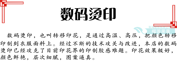 本店提供印制服务,费用另计。图案、字体均可。适合做 工作服、班服、团体服,您只要把自己想印的图案给我们的客服,我们会为您特别制作效果图,并且给亲报价。