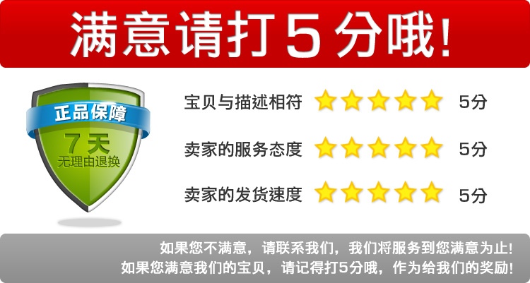 本店所有宝贝均支持7天无理由退换货!