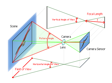 图2-3:焦距,CCD尺寸,视角三者的关系