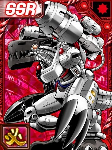 霸王龙型数字怪物,霸王龙型包裹在超金属盔甲中. 据说,经过多次奋战的强大球员中的真正勇气是在他们觉醒后第一次进化.