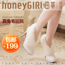 honeyGIRL田莘冬季新款女靴子白色真兔毛高跟靴子短靴女靴子裸靴