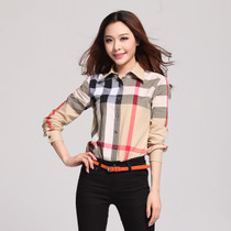 秋装新款 欧美大码女装 外贸女装 B家格子衬衫女长袖纯棉修身衬衣