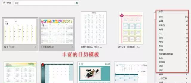 a:日历类别下有更详细的类别,您可以更准确地找到所需的日历模板;
