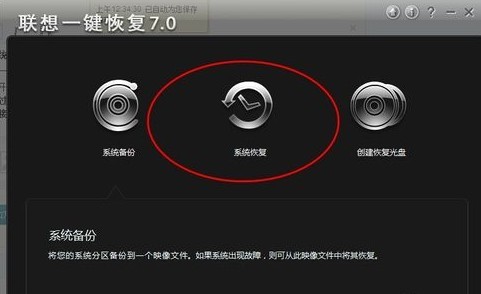 2、打开一键恢复软件后,在界面上单击“系统恢复”,如下图所示;