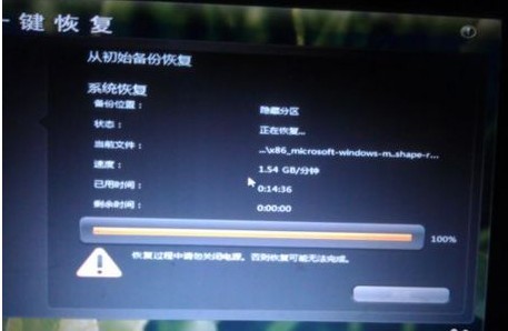 4、恢复过程大约需要20分钟。等待计算机自动完成,然后重新启动以完成一键恢复操作。此时,计算机系统将恢复为出厂状态。