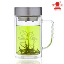富光双层玻璃杯 透明带盖过滤泡茶杯 玻璃水杯子 大容量520ml口杯