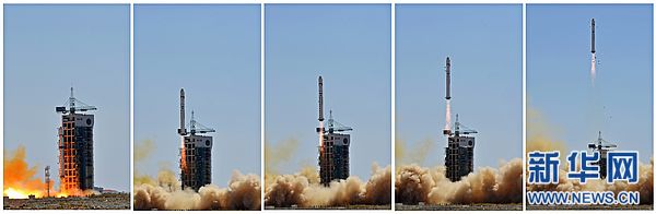 北京时间4月26日12时13分,中国在酒泉卫星发射中心用“长征二号丁”运载火箭以“一箭多星”发式,将国家科技重大专项高分辨率对地观测系统首颗卫星“高分一号”成功发射升空,同时还成功搭载发射了两个荷兰卫星分配器和三颗分别由厄瓜多尔、阿根廷和研制的小卫星。梁杰 摄
