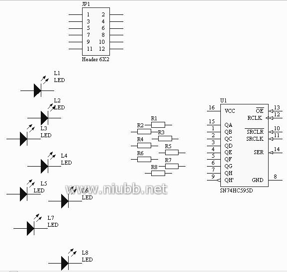 本项目中,所需要使用的电阻为47K,用鼠标单击选中47K电阻工具按钮,将鼠标移动到图纸上,按下Tab键,设置其序号为R1,将注释和Value的值设置为不可视。然后参照 图1.2.63放置8个电阻。
