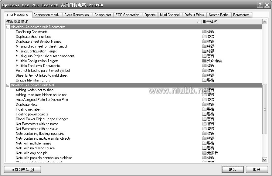 如图7.1所示,将“net with no driving source”后的报告类型设置为“无报告”。