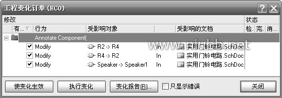 单击对话框中的“建立ECO”,弹出如图1.2.106所示对话框,表示将R2设置为R4,R4设置为R2,Speaker设置为Speaker1。