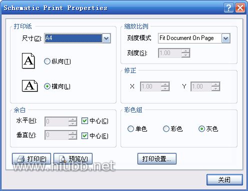 “Fit Document On Page”表示根据打印纸张大小自动设置缩放比例来输出原理图。