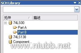 执行“工具”/“创建元件”,系统会再次自动打开一个工作区,同时在SCH Library 工作面板中可以看到元件74LS00有了两个子件了,即Part A和Part B。如图1.2.134所示。
