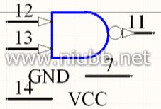 在元件74LS00中,电源引脚7和14是