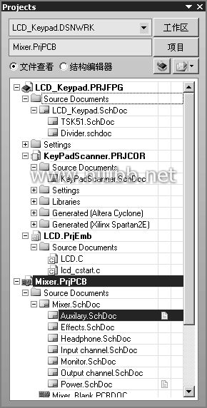 Protel DXP 2004以项目设计文件为单位对这些存储在不同的地方的文件进行设计和管理。一个设计项目中可以包含若干个类型相同或不相同的设计文件,这些文件可以存储在不同的地方。