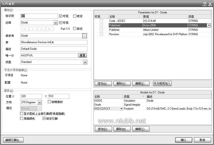 在“图形”选择区域中,位置X和位置Y用来精确定位元件在原理图中的位置。用户可以在后直接输入坐标。方向用于设置元件的翻转角度。镜像复选框用于设置得到元件的镜像。