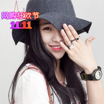 帽子批发韩国代购英伦复古纯羊毛呢圆顶礼帽渔夫帽女秋冬盆帽波浪