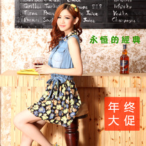 韩版碎花雪纺无袖牛仔连衣裙 2014春夏季女装秋冬新款修身牛仔裙