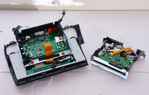将整台索航主机拆解开来,可以发现其中的光盘读取机构来自华阳品牌提供。