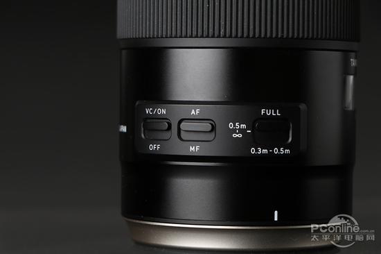 腾龙90mm F2.8 Di Marco VC USD镜头新的外形设计,按键重新设计,宽大的拨杆按键造型时尚了许多,而且尺寸大操作更顺手。另外三防设置也加强了按键拨杆的防护性,使得一般溅水不容易通过按键进入镜头内。
