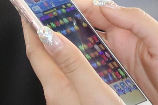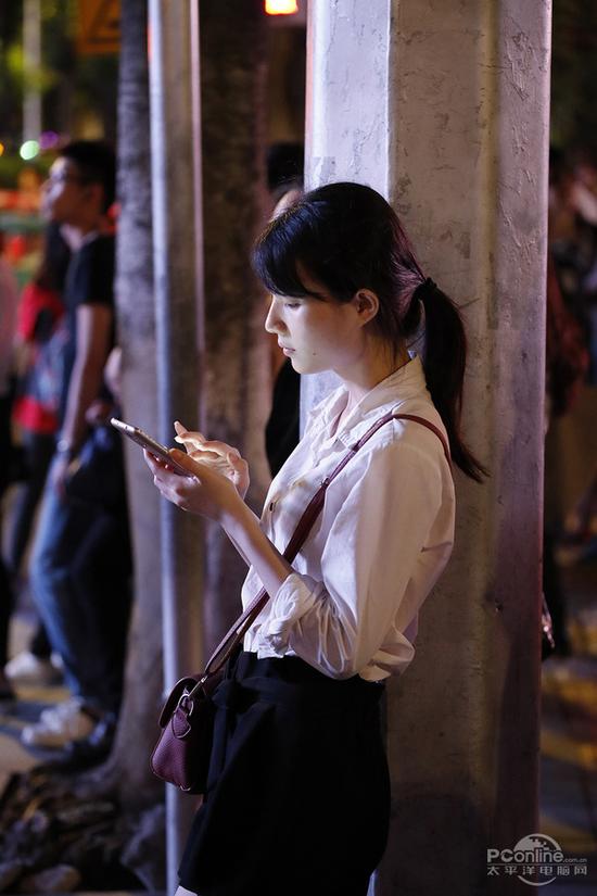 样片三中,得益于高像素的优势,拍摄此照片时,相机与手机有近5米的距离,使用腾龙SP 90mm F/2.8 MACRO Di VC USD能够轻松拍到手机屏幕上面的内容,美女正在玩爱消除的游戏。