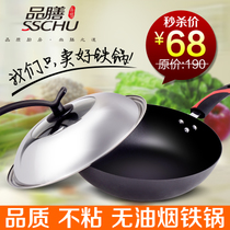 品膳 无烟不粘锅炒锅生铁锅32CM不沾铸铁烹饪锅具炒勺电磁炉包邮
