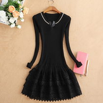 2013新款毛线裙弹力显瘦针织毛衣蕾丝打底连衣裙 金领PU皮