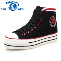 环球 韩版松糕底内增高帆布鞋女 高帮包边厚底休闲透气单鞋子 潮