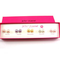 欧美外贸饰品批发 品牌超值多彩珍珠耳钉套装带包装盒(AO)
