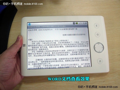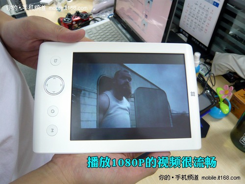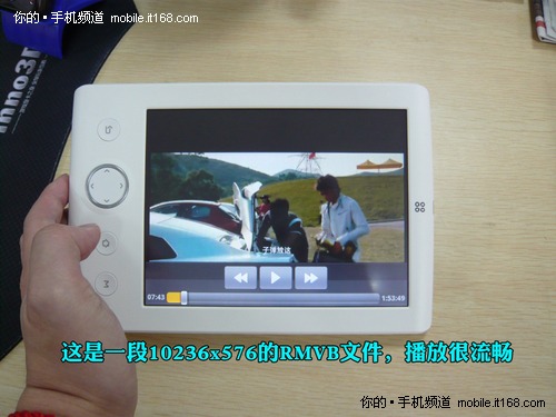 既然可以作为电子书,当然也是一个大号的MP4了,智器T7内置图形处理芯片,可以很好地播放视频,最大达到1080P(1920x1080),这可是全高清的水准,支持的文件包括MP4、3GP、RMVB等。