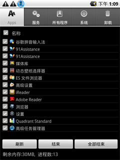 用任务管理器“杀掉”后台程序之后,可用内存接近80MB,但是多开几个软件之后就会减至20多MB,所以建议用户还是不要同时开启太多后台程序,特别是浏览器、电子书、游戏等耗内存的应用。