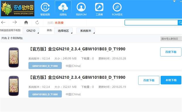 没有ROM包可直接在(安卓软件园刷机精灵)提供下载或其他Rom市场刷机包也可直接一键刷机。金立gn210刷机教程