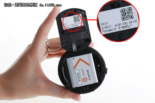 WiFi密码就在索尼QX100镜头机的电池仓后盖上。