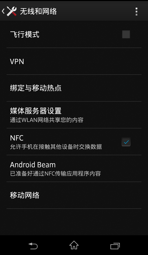 以我们使用的索尼L36h这款手机为例,在使用NFC链接之前,首先要在智能手机中打开NFC选项。
