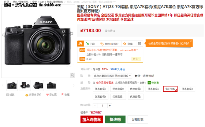 1、索尼A7套机(28-70mm)仅售7183元【点击查看详情】
