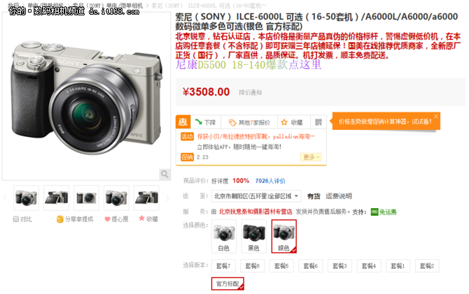 2、索尼ILCE-6000套机(16-50mm)仅售3508元【点击查看详情】