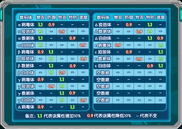 需要注意的一个小窍门是,只要掌握了究极体的这些属性值,从幼年期开始的每个成长阶段都可以参照究极体来培养哦!
