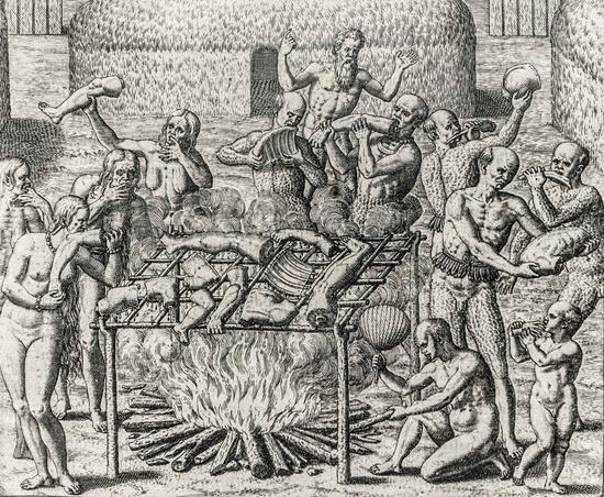 (16 世纪欧洲版画家描绘的巴西食人族。 图:Theodor de Bry)