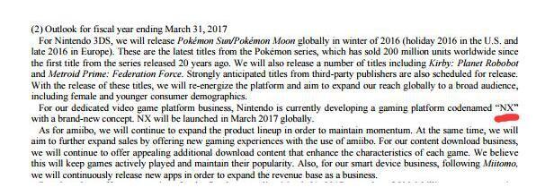 当然,任天堂也在其财报中提到了那台神秘的主机“NX”